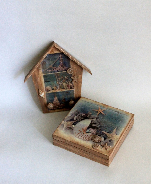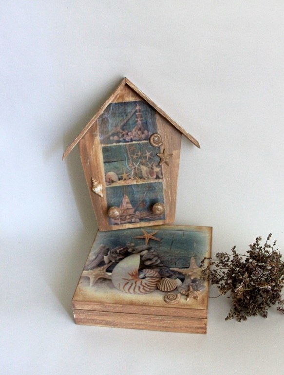 ДекупажНабор из купюрницы на два отделения и ключницы в морском стиле. Увидела эту неяркую рисовую бумагу и влюбилась, не смогла пройти мимо. А набор скрап-ракушек давно ждал своего часа))