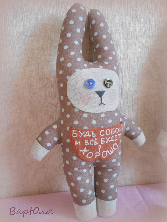 Поэтому взяла обычные лист А4, на котором контрольную писала))) нарисовала от руки "типа зайку", вырезала, перевела на тряпочку....ну и дальше по плану))))