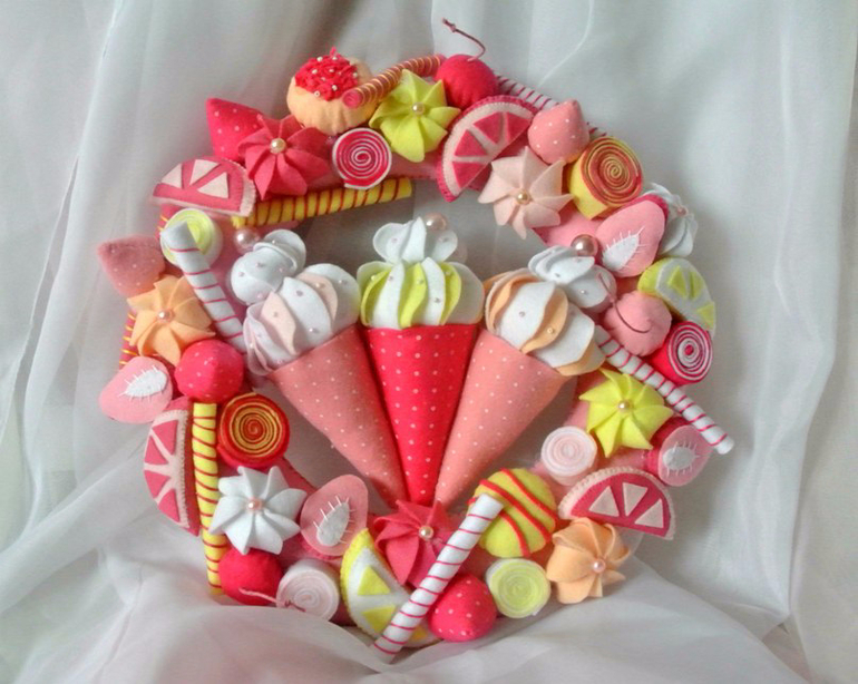 так мне венок и не нужен был =) мне сладости оч понравились) Яна, у вас фетра нет? Мне как раз в горошек нужен