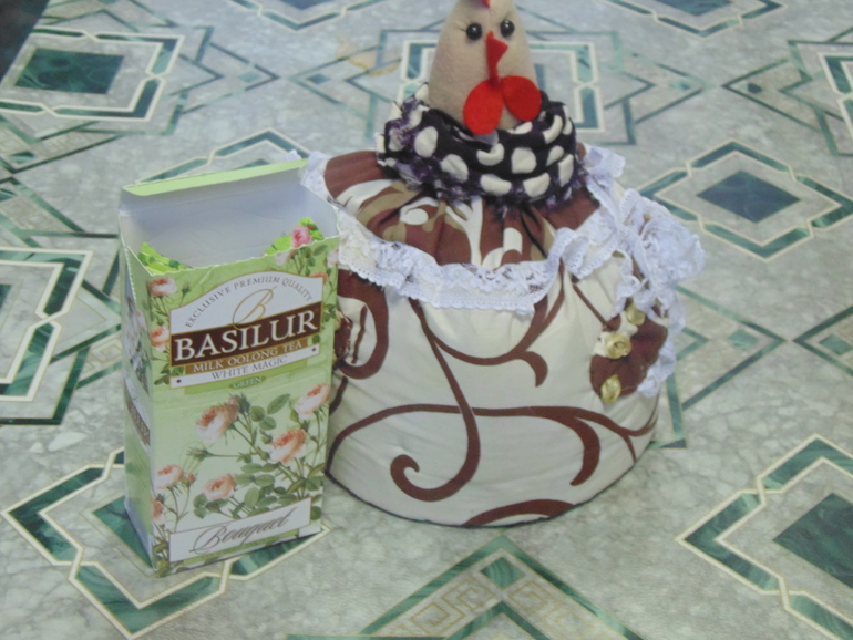 чаевничаем. чайничек внутри. курочка суперская и блин большая такая и прикольная. .. кстати, заколку с куры доця сразу утянула.теперь у нас "утро в цыганском таборе" нидайбох, я ей заколочку твою не поцеплю... истерика начинаецца....жаль, фотки нет(((( ..