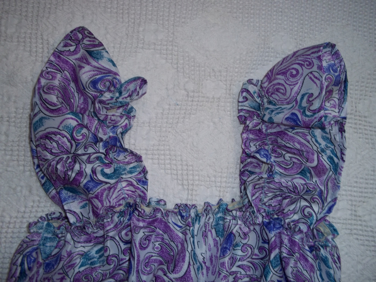 Обрабатываем край оборочки и пришиваем ее к низу изделия.