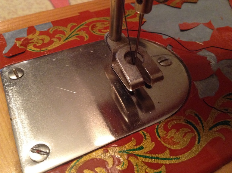 Клёвая находка ! У меня в детстве тоже была , железная крепкая , сейчас дочке купила только пластиковую , они шьют тамбурным швом , как мешки с мукой зашивают , за нитку  потянешь и всё распарывается .