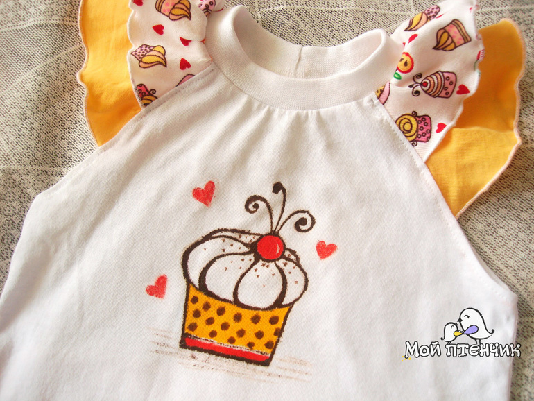 Пироженка на груди - роспись акрилом что-то давненько я на ткани не рисовала.