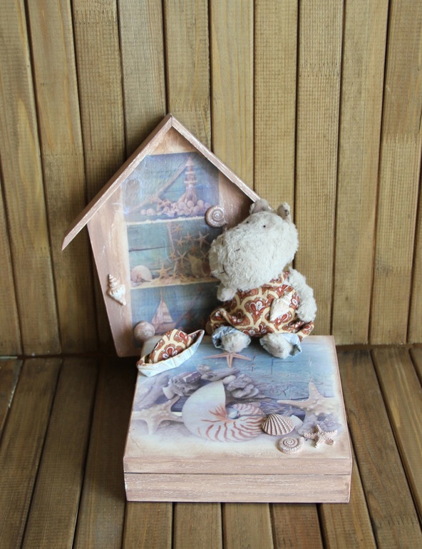 А задумка была сшить бегемота к моему декупажному морском набору. По-моему, подходит)) Как считаете?))