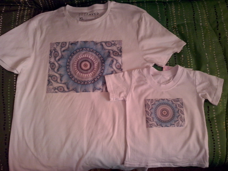 Декор, витражи.Family Look для папы и сына! Рисунок 3D фрактал (уж очень эти фракталы папе нравятся)..Переводила с помощью термобумаги (не помню как правильно называется) и утюга