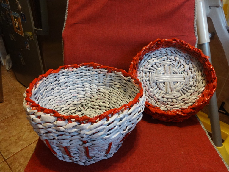 Спасибо! Корзинку красила частями. И в процессе плетения (там стоячки протаскивать нужно было через плетение, перед этим и покрасила частично саму корзинку и стойки) и в конце.