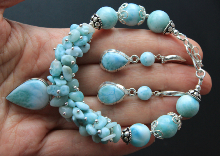 Ларимары- это моя любофффф.Я их уже целую шкатулку "насобирала".Расстаюсь только с ними очень неохотно,всегда очень жаль, так как камушки все разные,неповторимые.и огромное спасибо мужу за оправу:))),это его рук работа...!!