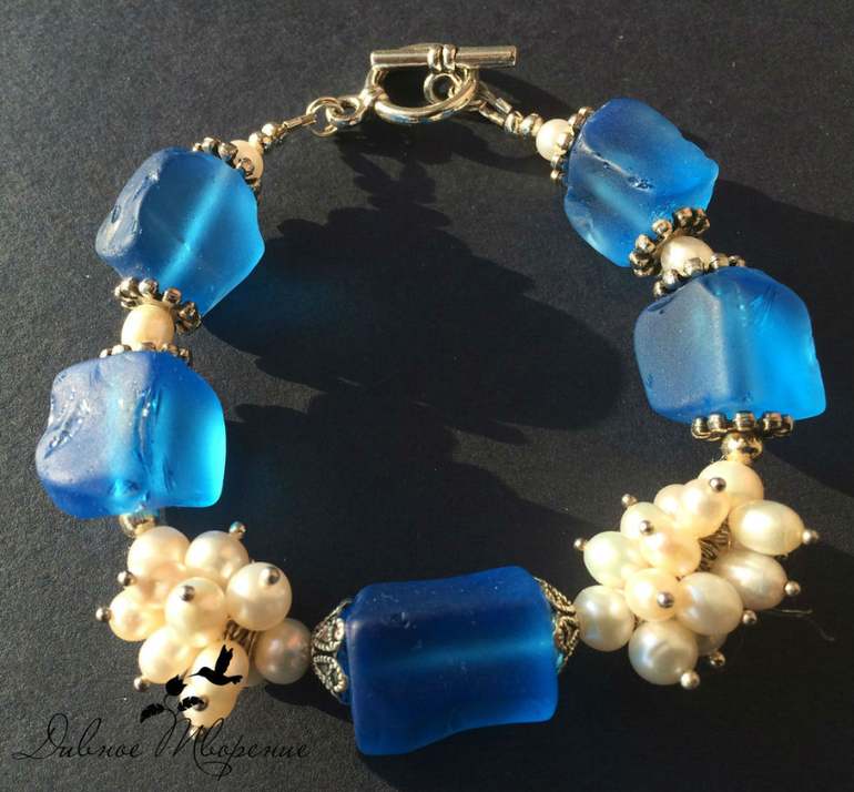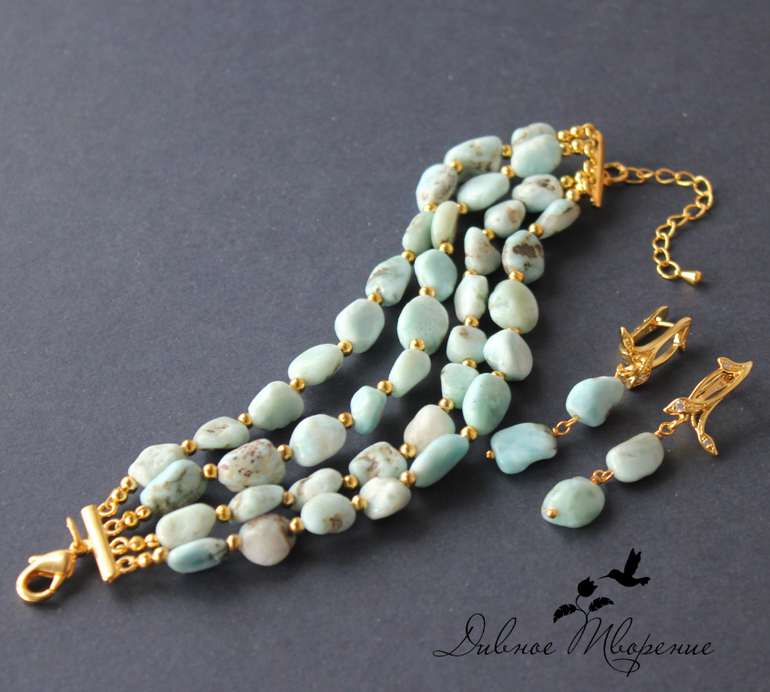 Еще один браслет из ларимара с позолоченной фурнитурой
