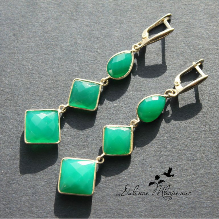 Длинные серьги из серебра 925 пробы и хризопраза.