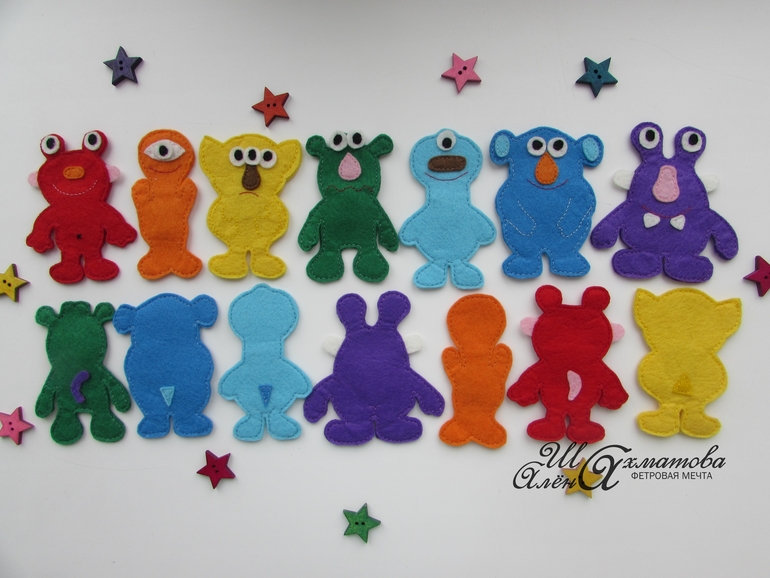 Игра для изучения цветов. 7 лунатиков разного цвета (цвета радуги).