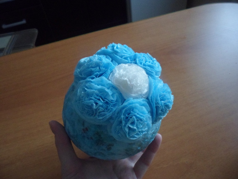 Изделия из бумаги, папье-маше, квиллинг.Давно хотела попробовать сделать цветочный шар и вот моя первая попытка)