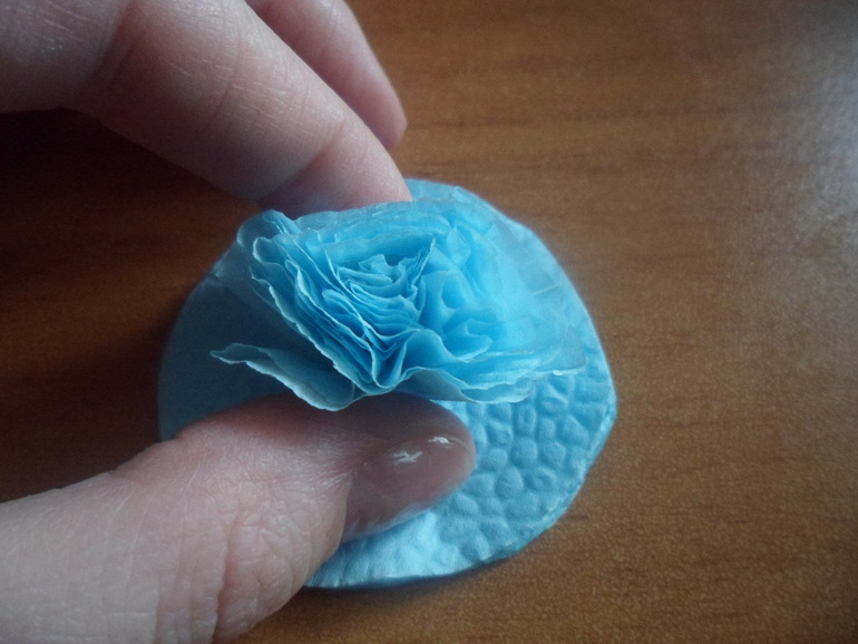 Далее заготовила розочки. Для этого взяла обычные однослойные бумажные салфетки