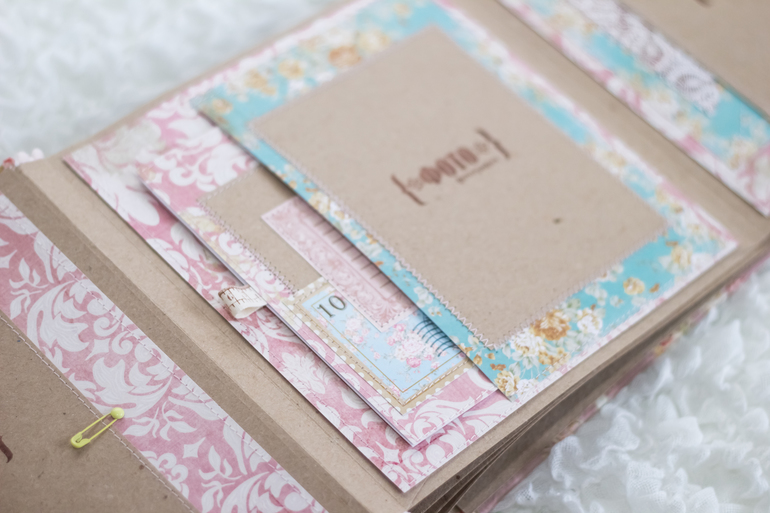 Альбом рассчитан на пять полных разворотов, плюс множество раскладных и откидных дополнительных страничек. Я научу вас, как оформить в альбом бОльшее количество фотографий, при этом не перегрузив работу.