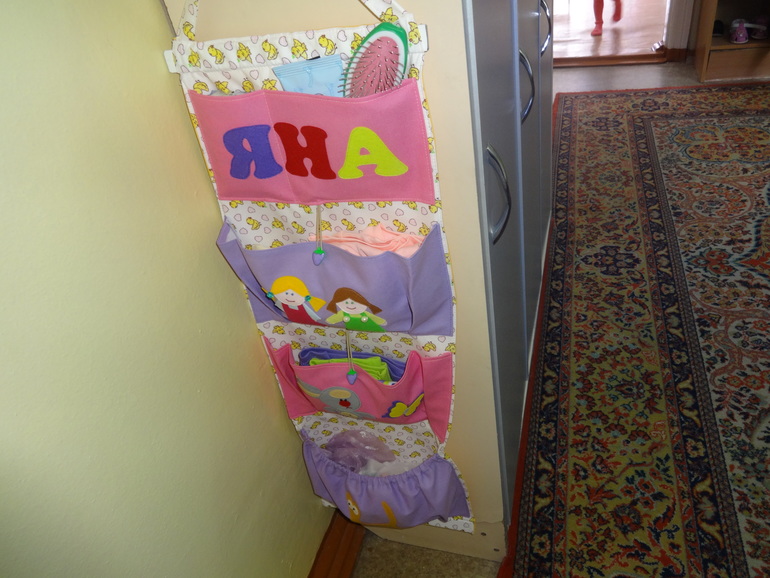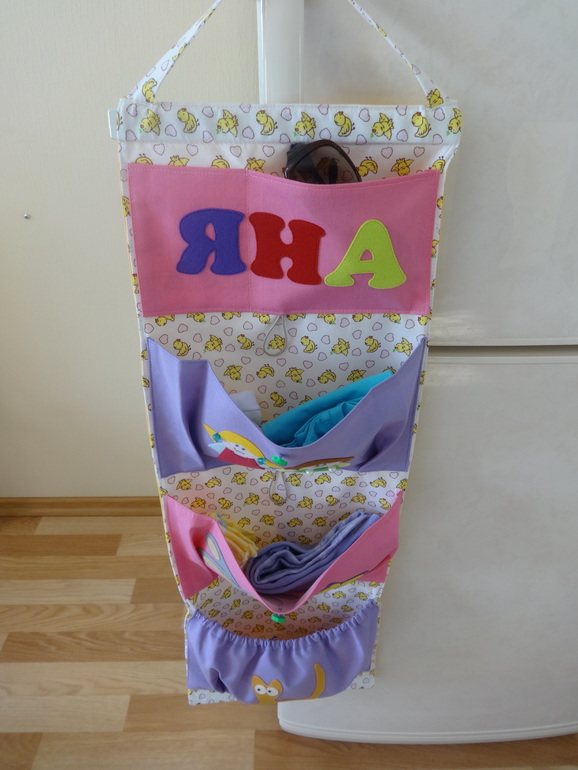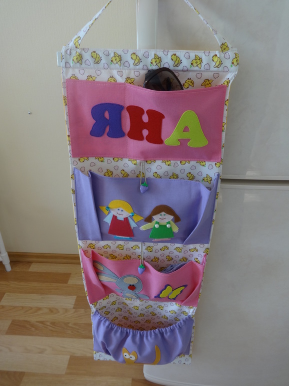 Шитье одежды, выкройки, ремонт одежды, шторы, швейные машины (уже приобретенные)Со вчерашнего дня наша Яна ходит в садик. Это так волнительно и переживательно, что я уже 2 ночи не сплю, такая вот я ненормальная) Нервничаю как перед экзаменом) Шкафчик нам в саду не выделили ,в связи с тем что группа переполнена и лишних шкафчиков нет, так что пришлось шить кармашки для хранения Яночкиных вещичек, а то в пакете на крючке как-то не очень.Размер 30х80 см.