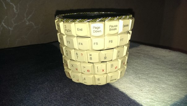 Болезнь "хомячизм" не даёт ничего выкидывать. Вытащила из мусорного ведра компьютерную клавиатуру. Обклеила цветочный горшок в которых цветы продают в магазинах.