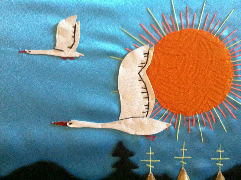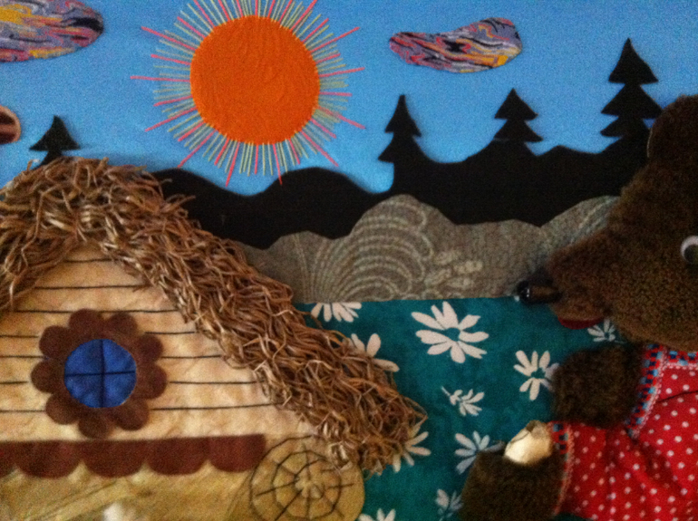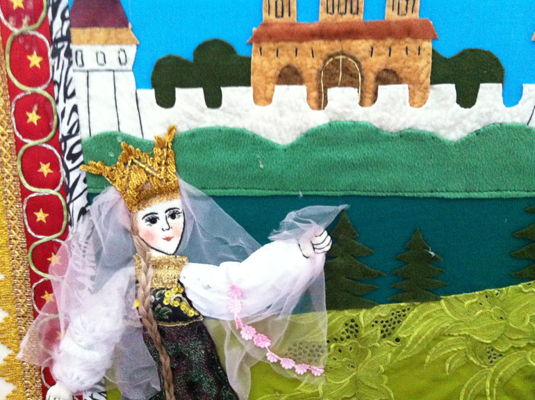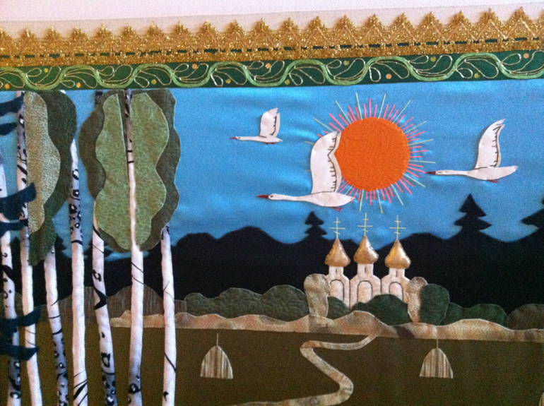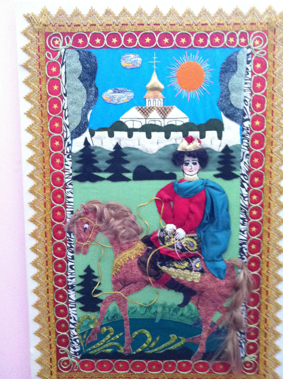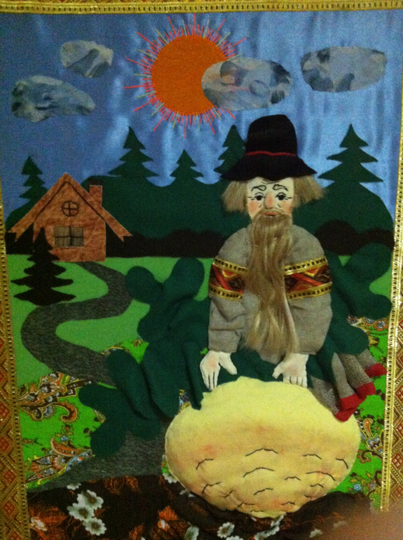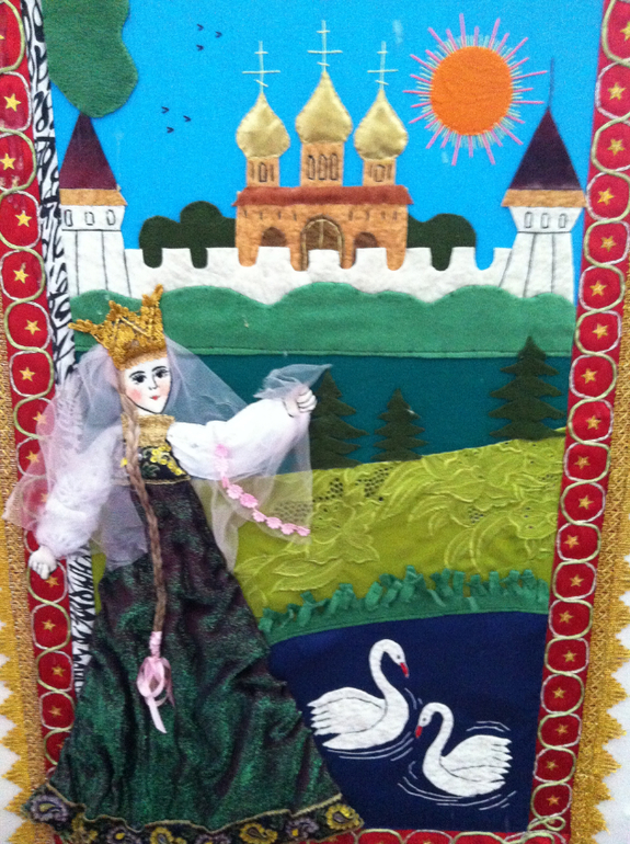 У нас в детском саду на лестничной площадке, и в коридорах висят большие пано, по мотивам русских народных сказок. Сделано все из ткани, кожи и т.п. Я все время на них смотрю и восхищаюсь, такая кропотливая работа, все очень аккуратненько, и красивенько. Сегодня быстренько на телефон сфотографировала. Фотографии получились неказистенькие, и не передают всей красоты, но что есть.