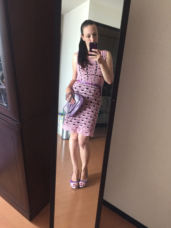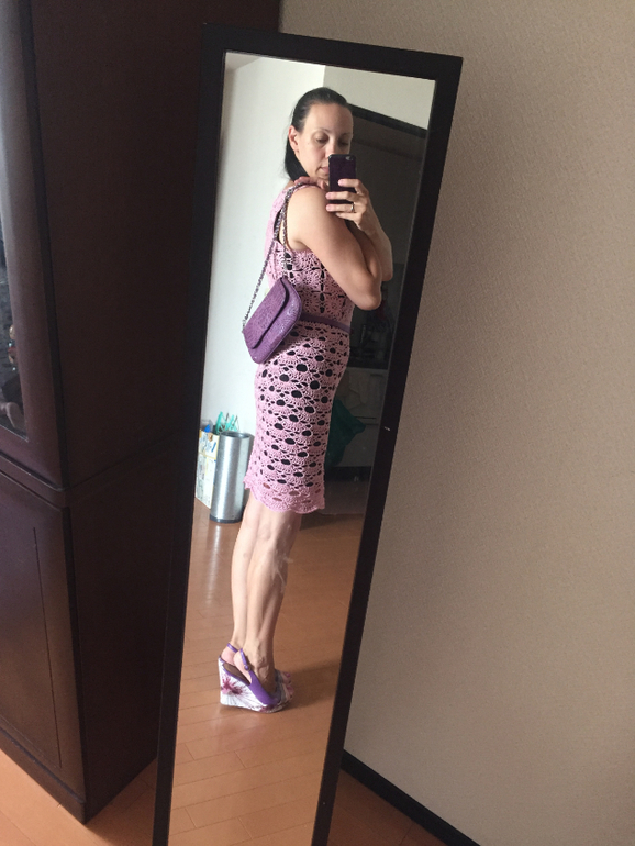 Лена, не слушайте никого -вы связали обалденное платье !!!!! Эксперементируйте с цветами в аксессуарах ,обуви и ремня( а также его толщиной) НО, главное это ваши ощущения — ведь вы ж его для себя вязали! Наслаждайтесь им,оно во всем мире в единственном экземпляре ;)