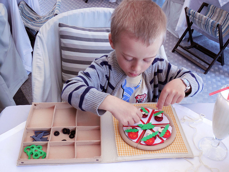 Книжка-коробка с пиццей из фетра сшита специально для одного киевского ресторана итальянской кухни :) Надеюсь юным посетителям она понравится, мои были в восторге!:)