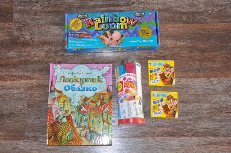 а это классные подарки Алине. наборы для творчества очень интересные и замечательная книга! ну и конечно любимый несквик. спасибо от нее большущее!