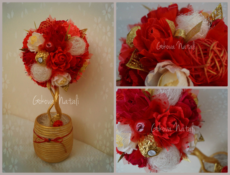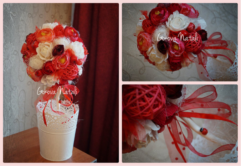 В этом просили сочетание красного с золотым (горшок потом еще 2 раза покрывала золотой краской)