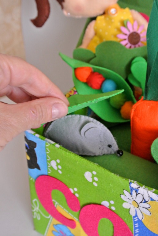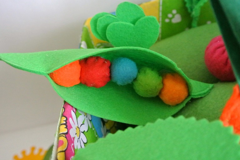 цветной горошек, горошины вытаскиваются( на липучках)-изучаем