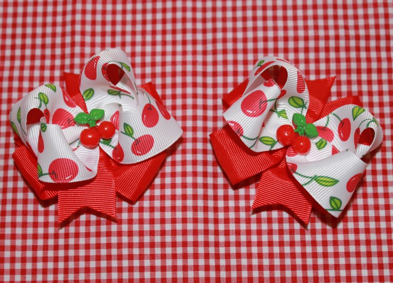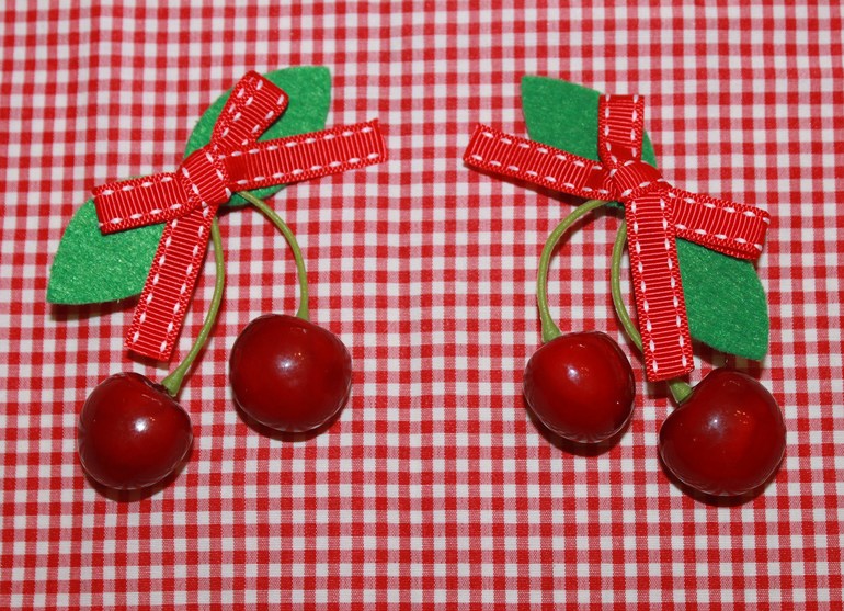 Еще сделала заколки для волос, как же без них. Эти вишенки в саду очень понравились детям, один мальчик даже попробовал на вкус