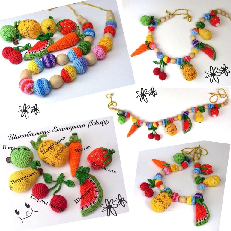 Бижутерия для слингомам. Слингобусы. Грызунки.Связались на заказ вот такие фруктово-овощные слингобусы "Витаминное ассорти"
