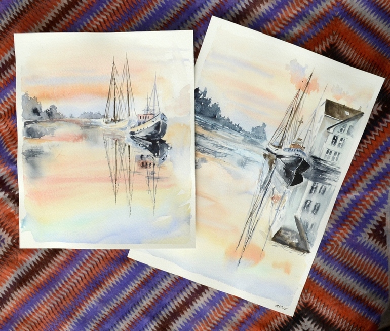 Я эти парусники рисовала по фото, а на днях смотрю-известная в сети художница МК (видео) по их написанию выложила..сейчас поди пол-сети их нарисуют))