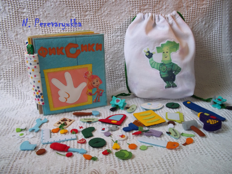 Развивающие игрушки«А кто такие фиксики - большой-большой секрет!» - так поётся в веселой песенке про фиксиков. До недавнего времени люди почти ничего не знали об этих маленьких человечках. Они живут внутри машин и приборов. Они такие же, как и мы: так же ходят в школу, работают. Фиксики ухаживают за техникой изнутри, чистят её, смазывают, устраняют мелкие поломки. Они - очень умелые мастера, работают на совесть. Фиксики привыкли скрываться от людей, но есть они повсюду: в компьютерах, холодильниках, телевизорах… А теперь об этих таинственных трудолюбивых человечках предлагаю посмотреть на страницах моей новой книжки, сшита которая по мотивам серий "Помогатор", "Застежка молния", "Часы", "Холодильник", "Плита", "Духовка", "Телефон", "Копилка", "Стиральная машина"…
