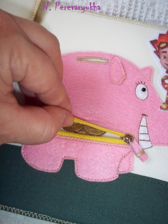 Копилка функциональна, в нее с помощью Файера можно бросать монетки и доставать внизу (Файер- фиксик красного цвета, одноклассник Симки, активный и деятельный, иногда не в меру. На пару с Ноликом попадает в разные истории. Любит предлагать принципиально новые решения, недаром именно его охарактеризовали как "мотор нашего класса")
