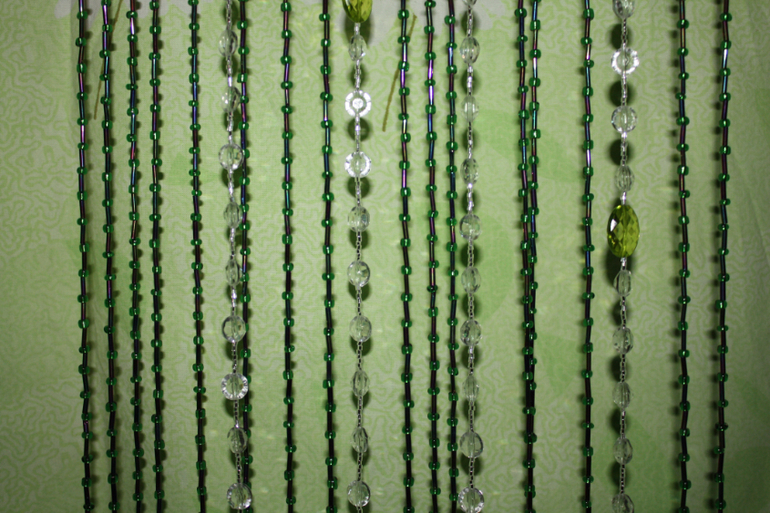 Бисер. Бисероплетение. Украшения из бисера.Еще в прошлой жизни (до рождения ребенка) я как-то делала штору из бисера, стекляруса и бусин. Крепилась она на потолке на карнизе, кот покупали тогда в ОБИ. Служила как-бы перегородкой. Квартира была еще съемная тогда, поэтому хотелось туда внести долю чего-то своего. А такие шторы мне ну очень приочень нравились. Их бывает много покупных.. но они из пластика, а мне же хотелось стекла и чтобы было много этих нитей с бисером. Чтобы проводишь рукой по нитям и такой приятнейший звук ударяющихся друг от друга стекл. бусин и бисера.. дзыньььь.