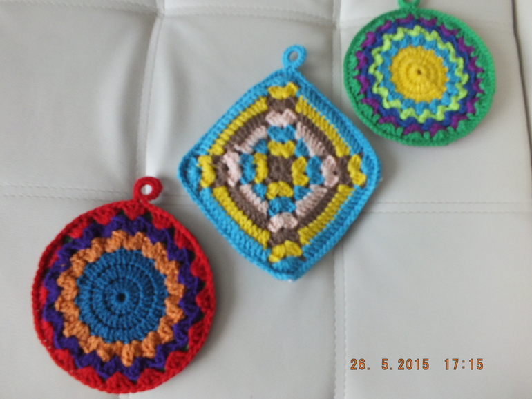 Еще в посылке ждала вот такая красота- прихватки- они уже поселились у нас на кухне.