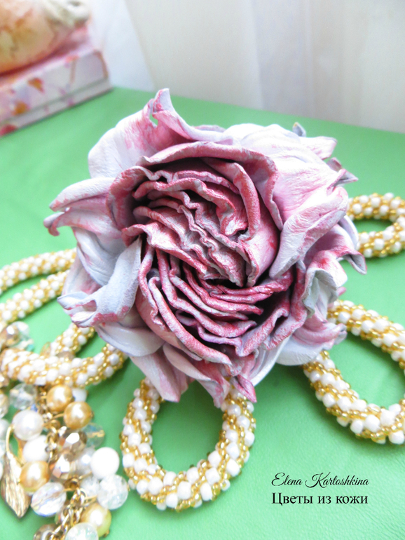 Эта роза самостоятельный браслет. Из перламутровой кожи. Подумываю ему сделать пару брошь или заколку, а может колье.
