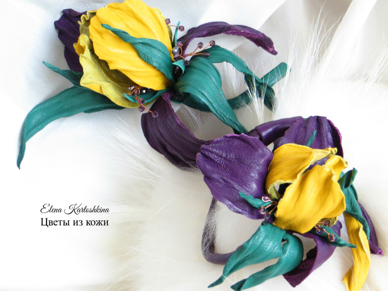 Изделия из кожиОдин сделала как пару к броши Ирис.