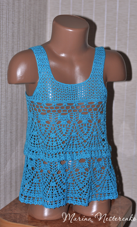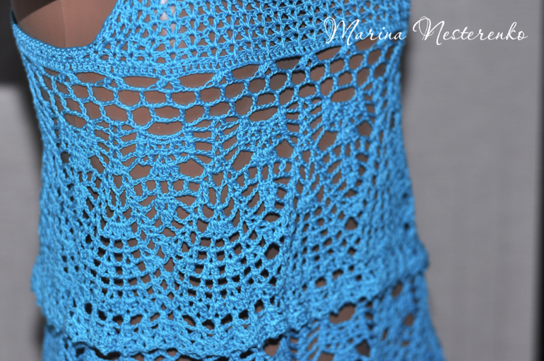 Не смогла и я пройти мимо шикарных каскадов Костуровой..... Решила пробно связать топ-туничку. Правда сначала хотела сарафан, но ниточек не хватило.