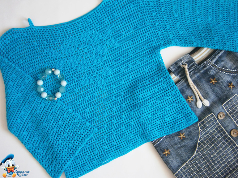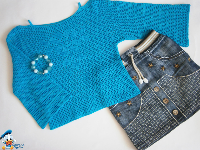 Вязание крючком (РАБОТЫ И СХЕМЫ)Кофточка для пляжа, связана из бамбука в 2 нити.