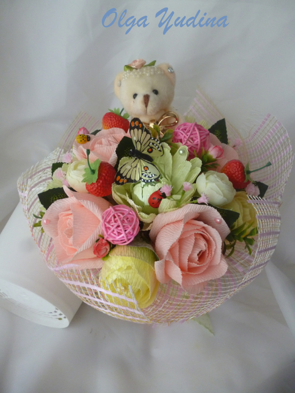 Девчата,вот и всё,дорогие мои!!!Спасибо,что доглядели. Всем привет большой и творческих успехов,ну,и денежку,конечно за свои труды!!!Для меня это всё же больше хобби,не могу долго сидеть без любимых букетов,делаю даже просто,по вдохновению. Правда появилось у меня новое хобби-Алмазная вышивка или мозаика,скоро покажу результат первой картины)))