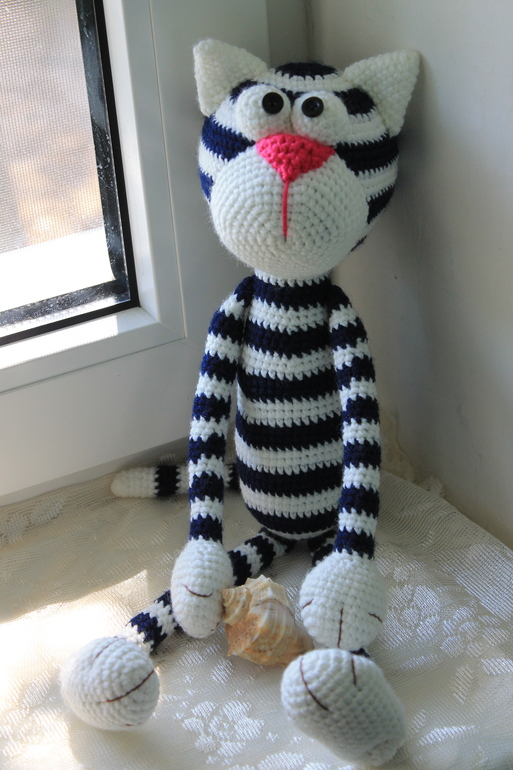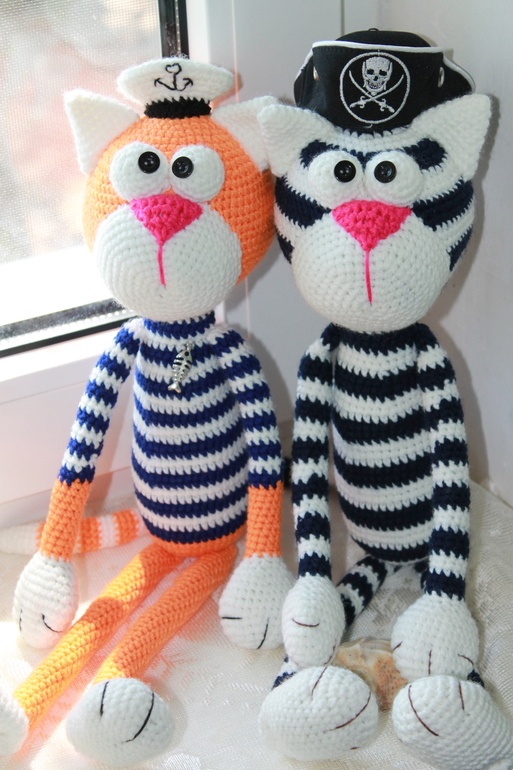 еще есть полосатый котик, он еще не определился моряк он или пират! не получается ему имя придумать