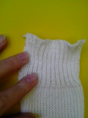 в красном образце можно продеть в крайние петли спицу (где пруток был) и потянуть наружу как бы, чтоб все петельки выровнялись, и должно все стать красиво. а вот в белом не знаю, я всегда 2*2 вяжу резинку