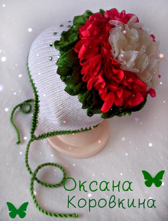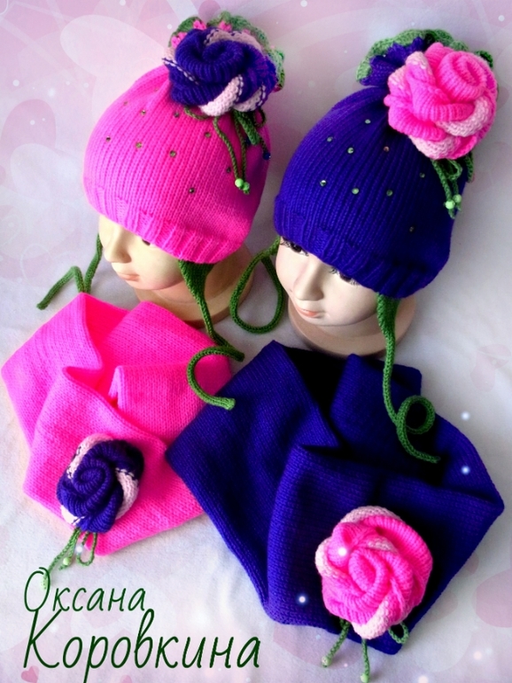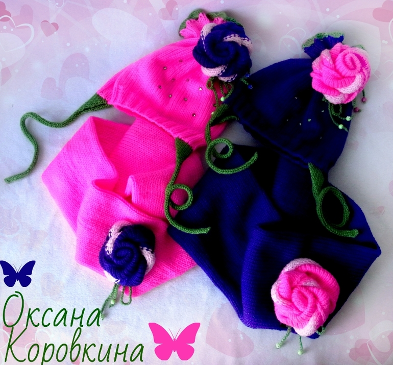 Все красивые шапочки,а как Вы на верхнем фото делали сиреневый цветочек?