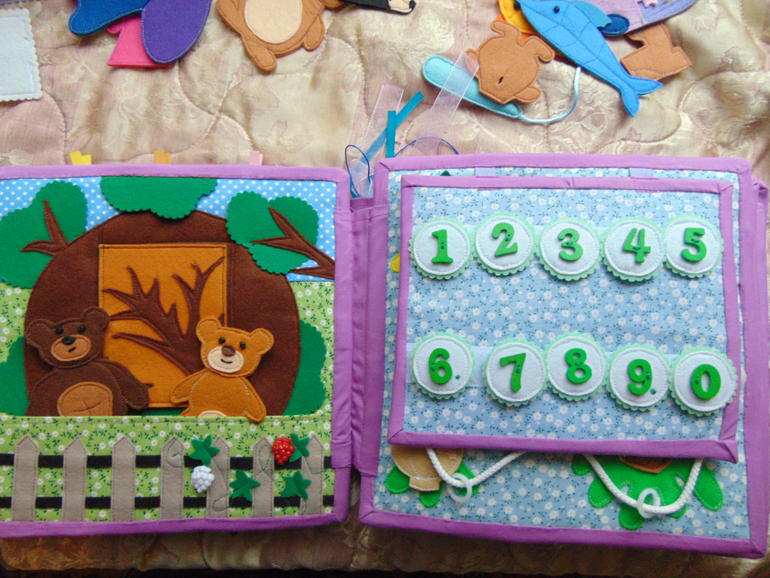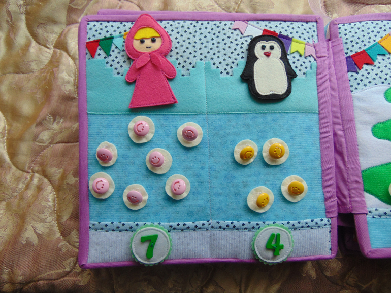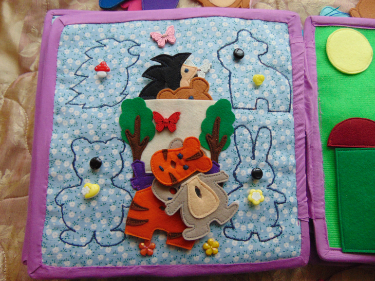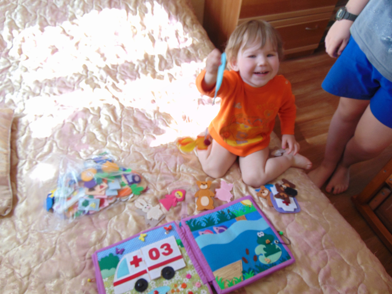 Далее пазл со зверюшками (спасибо Олесе) и страничка с различными фигурками на липучках. Можно придумывать различные фигурки, дома, машинки и т д. (можно еще использовать фигурки со странички с железной дорогой).