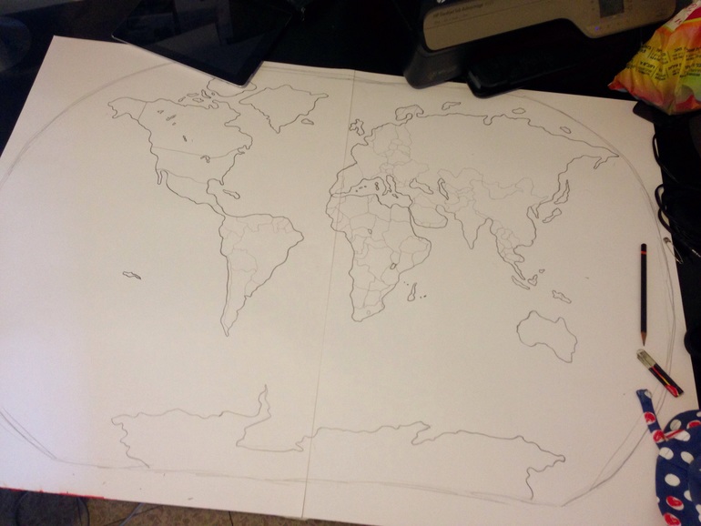 Живопись, точечная росписьВыкладываю так, для фана. Заказал один детский садик приблизительную карту мира, нарисованную от руки (зачем-то). К своему удивлению, нарисовала практически по памяти, без особых косяков )))) А я лет 10 назад думала, нафига мне география )))