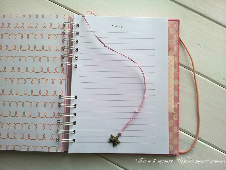 Закладка - вощеный шнур с подвеской, закрывается на резинку.