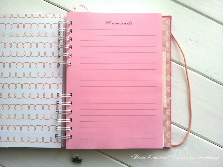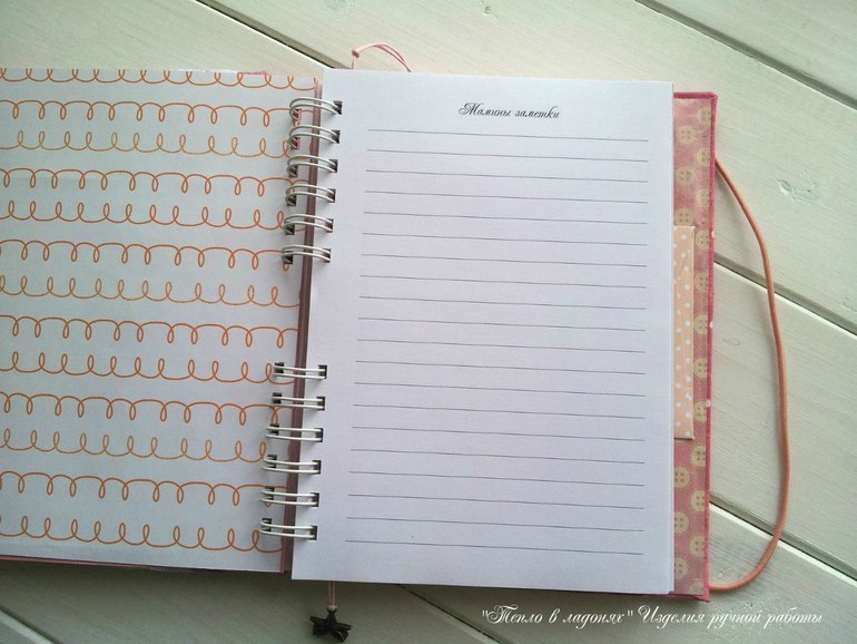 Формат А5, внутри листочки соединены на пружинку. Обложка обтянута хлопком.