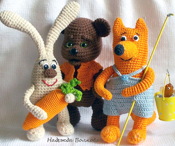 Надя какие игрушки суперские!!первая троица вообще суперрр пупер)))Надь а ты не свяжешь нам Пеппу маленькую ростом около 20 см в кол-ве 2 штук))а я вам бы альбомчик сделала с динозаврами))-по моему у меня где то были картинки- или с Басиком??)))