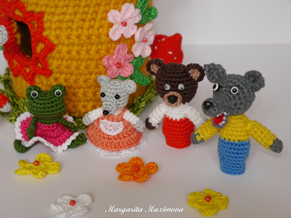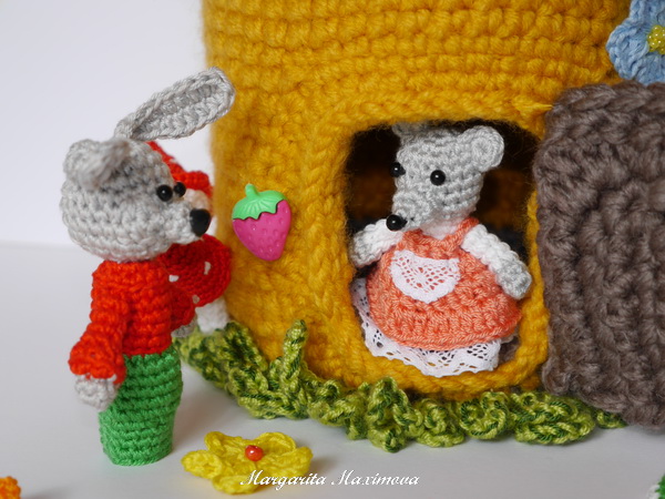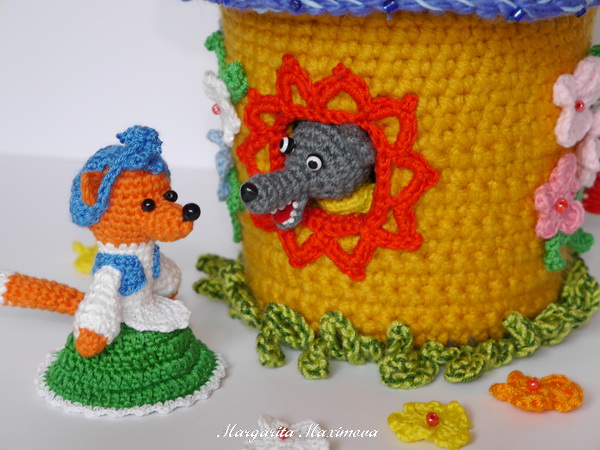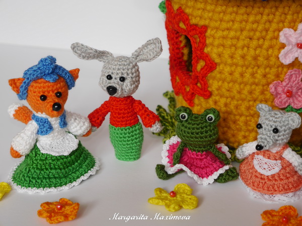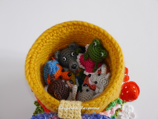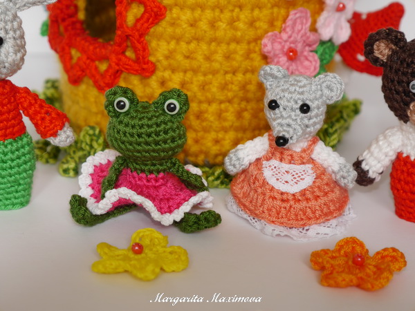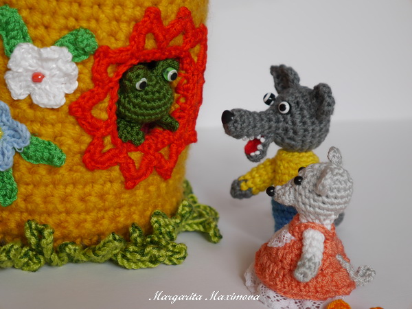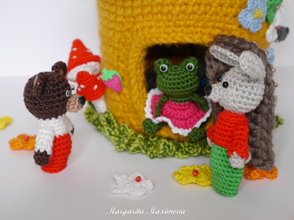 Как красиво и красочно )) была бы ребенком, непременно бы в такое поиграла)) своей вязать не хочу.. и остатки ниток обменяла, и все опять по квартире разойдется. Вот в садик попросят что-нибудь, тогда и подумаю) а Вы молодчина! Просто супер!
