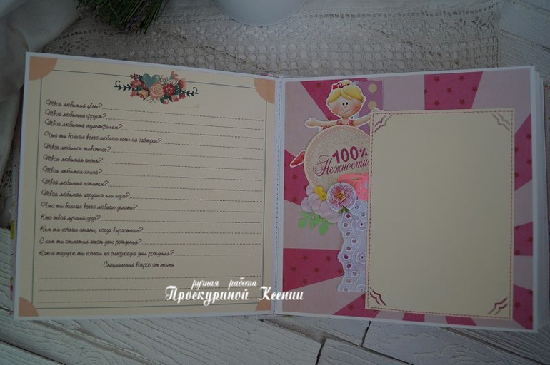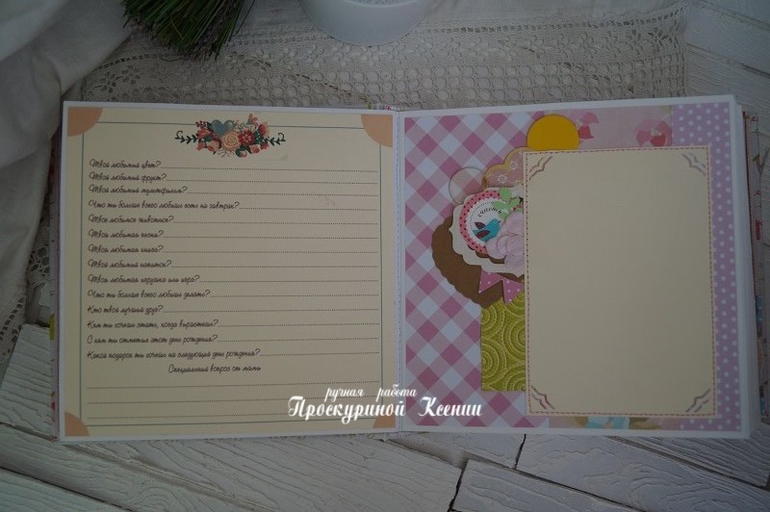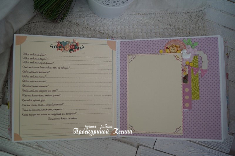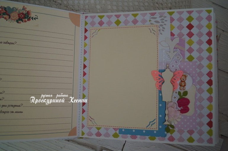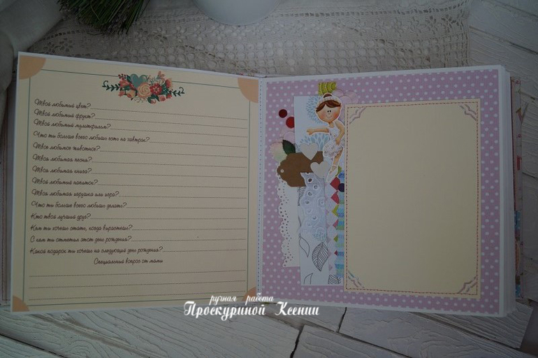 Книжка расчитана на размещение фотографий и записей с 3х до 18ти лет