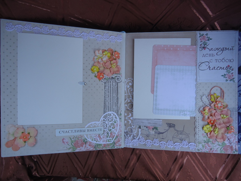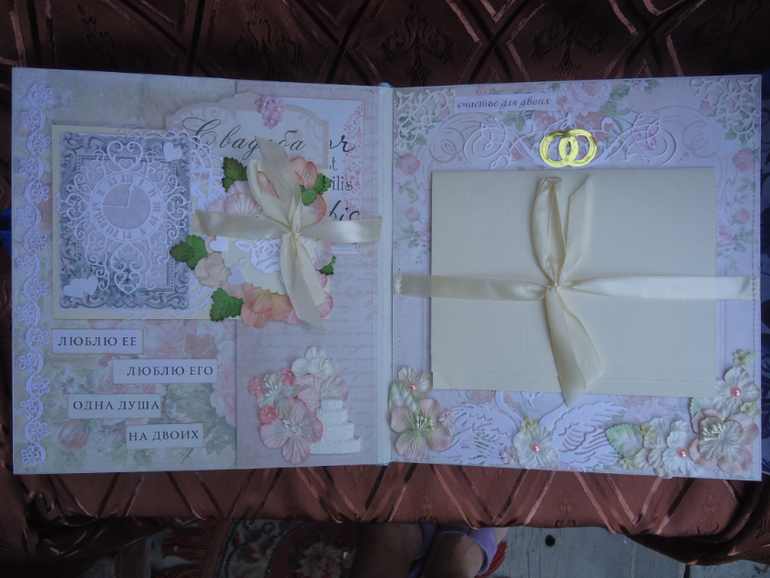 СкрапбукингПривет всем!!! Покажу Вам свой первый свадебный альбом сделанный на заказ. Использовала в основном бумагу FLEUR из разных коллекций. Идейки черпала у всех понемногу))- подглядывала в чудесный альбом Анастасии, у Вероники в СП много интересных идеек взяла), обложка по МК Светланы ,переплет Елены Виноградовой и"интерактивная" раскрывашка- по МК Яны Новиковой.