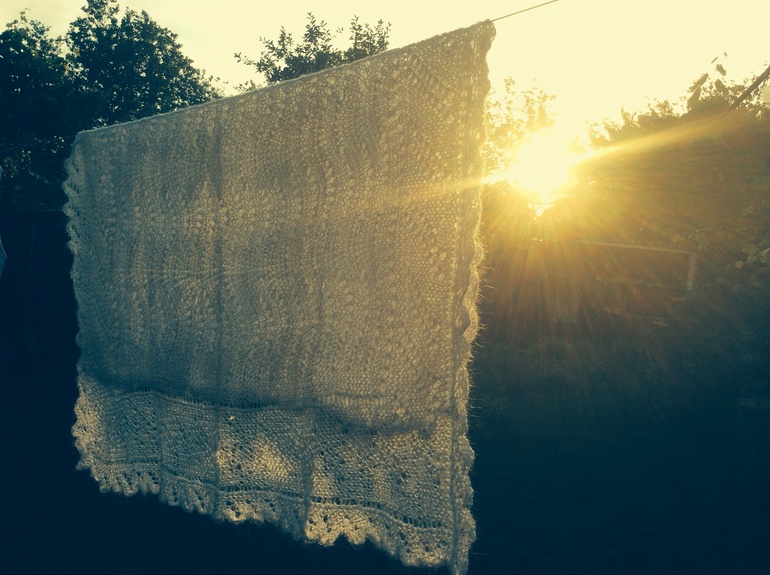 Платок пуховый, огромный белоснежный и связан золотыми ручками Али!
