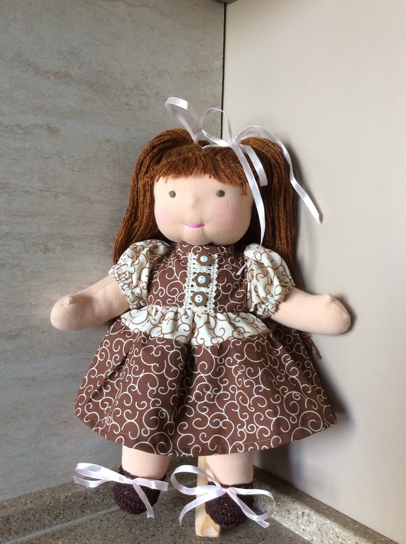 Вот такая куколка в шоколадном платьице сшилась у меня и уехала вместе со своей сестренкой в розовом к двум девочкам-сестренкам.